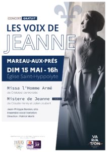 03 Mai CONCERT « LES VOIX DE JEANNE » by Laurence in Comments Calendrier Ajouter au calendrier Ajouter au calendrier Timely Ajouter à Google Ajouter à Outlook Ajouter au calendrier Apple Ajouter à un autre calendrier Exporter vers XML Quand : 15 mai 2022 @ 16 h 00 min 2022-05-15T16:00:00+01:00 2022-05-15T16:15:00+01:00 Où : Eglise saint-Hyppolyte Coût : Gratuit Contact : Communauté de Communes des Terres du Val de Loire 0238451111 Concert